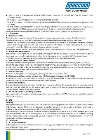 • Type “B” with positive pressure and DIN 58600 bayonet connector, to be used with Type BN demand valve.