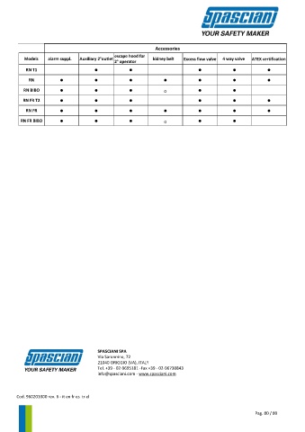 Models alarm suppl. Auxiliary 2°outlet kidney belt Excess flow valve 4 way valve ATEX certification