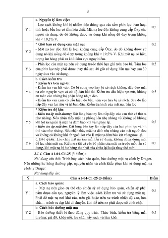 Ý 1 nắm được cấu tạo, nguyên lý làm việc, cách kiểm tra và sử dụng mặt nạ. 0,5
