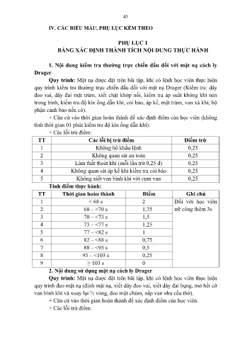 Quy trình: Mặt nạ được đặt trên bãi tập, khi có lệnh học viên thực hiện