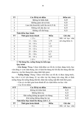 viên đứng ở vị trí chân thang, khi có lệnh lên thang thì bắt đầu lên thang đến khi