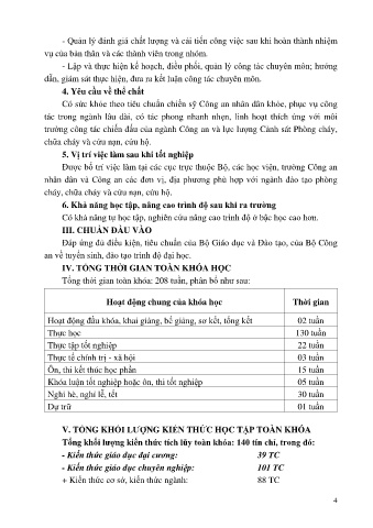 Tổng thời gian toàn khóa: 208 tuần, phân bổ như sau: