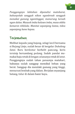 si Bujang Linjo, sudah besar di bergelar Dubaleng
