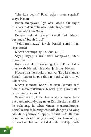 Dengan sekuat tenaga Kancil lari. Macan