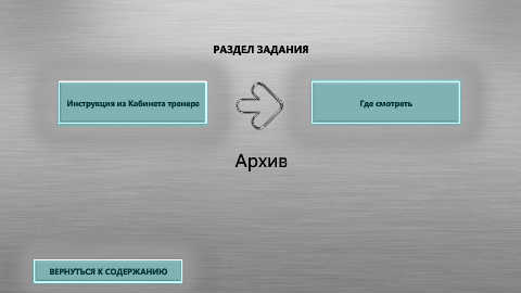 РАЗДЕЛ ЗАДАНИЯ Инструкция из Кабинета тренера Где смотреть Архив ВЕРНУТЬСЯ К СОДЕРЖАНИЮ