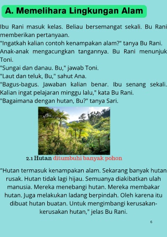 "Bagaimana dengan hutan, Bu?" tanya Sari.