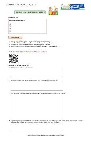 13. Scan barcode yang ada di LKPD yang memuat artikel tentang sampah.