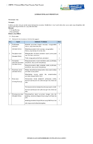 Lembaran ini diisi oleh guru untuk menilai keterampilan presentasi. Berilah skor 2 atau 1 pada kolom skor sesuai aspek yang ditampilkan oleh