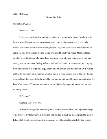 It had been a relatively quiet family gathering; my parents, myself, and my sister Amara were all digesting the most recent news reports. She was twelve, I was only twenty-four hours removed from turning fifteen. My, how quickly can the storm clouds arrive. At six, my youngest sibling Quinn was still blissfully unaware. Mom and Dad opted to keep it that way, allowing them one more night of sleep to imagine living in a country run by a woman. Seeing as Mom had undertaken the herculean task of bringing them upstairs for said night of sleep, Amara and I were left downstairs with Dad. Amara had hardly eaten any of her dinner. Chicken nuggets were usually one of the only things she would eat, but appetite had evaded her. After an unfathomable few moments when the three of us stared off into our own voids, Amara joylessly requested to watch a show in the living room.