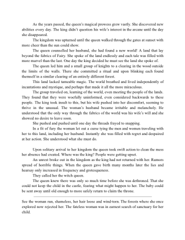 As the years passed, the queen’s magical prowess grew vastly. She discovered new abilities every day. The king didn’t question his wife’s interest in the arcane until the day she disappeared.