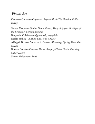 Steven Vazquez– Senior Photo, Faces, Truly July part II, Hope of the Universe, Corona Boriqua