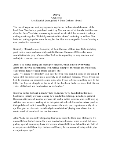 Sonically, Øblivia borrows from many of the influences of Burn Your Idols, including punk rock, grunge, and some early metal influences. However, Øblivia also leans much further into prog influences like Tool, while expanding on song structure and melody to create our own sound.