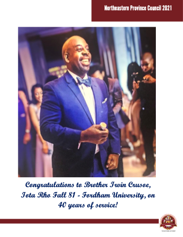 Congratulations to Brother Irvin Crusoe, Iota Rho Fall 81 - Fordham University, on 40 years of service!