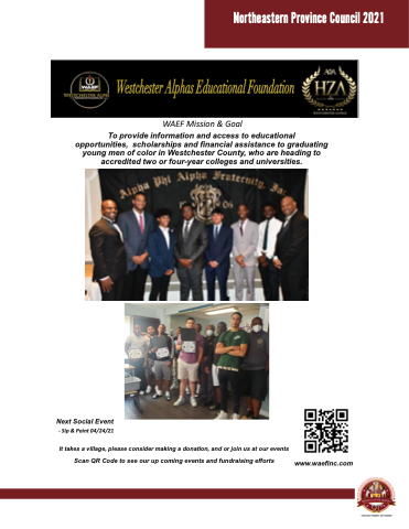 To provide information and access to educational opportunities, scholarships and financial assistance to graduating young men of color in Westchester County, who are heading to accredited two or four-year colleges and universities.