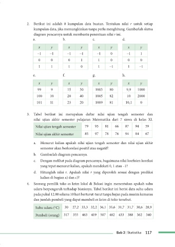 2. Berikut ini adalah 8 kumpulan data buatan. Tentukan nilai r untuk setiap