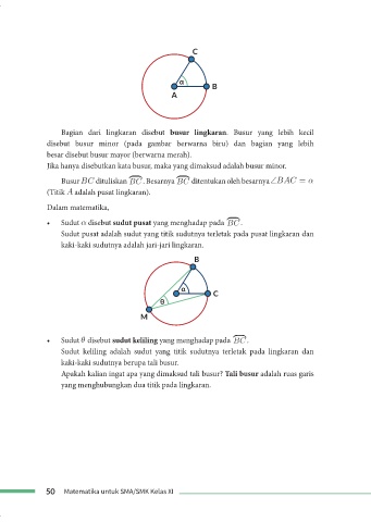 Busur BC dituliskan BC . Besarnya BC ditentukan oleh besarnya ∠BAC = α