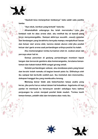 Aku memenangkan lomba turnamen silat ini. seakan-akan tak