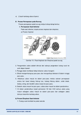 Gambar 15 : Fase Inspirasi dan Ekspirasi pada burung