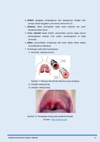e. Difteri, penyumbatan faring/laring oleh lendir akibat infeksi bakteri
