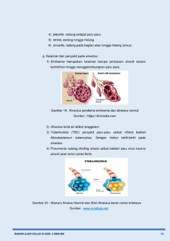 4) Pneumonia radang dinding alveoli akibat bakteri atau virus karena