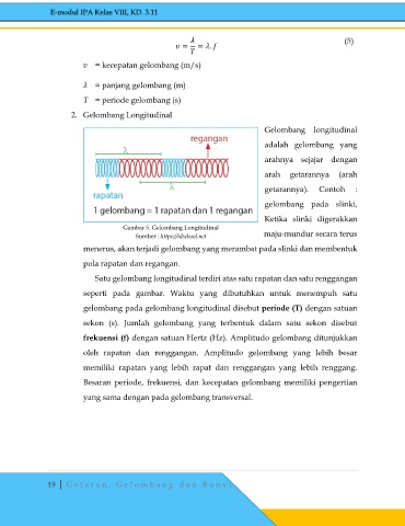 Satu gelombang longitudinal terdiri atas satu rapatan dan satu renggangan