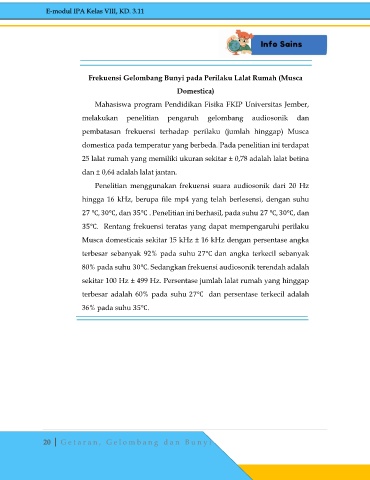 Penelitian menggunakan frekuensi suara audiosonik dari 20 Hz