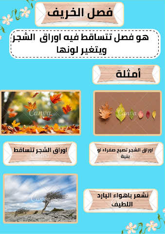فصل الخريف هو فصل تتساقط فيه اوراق الشجر ويتغير لونها أمثلة اوراق الشجر تتساقط أوراق الشجر تصبح بنية او اوراق الشجرصتفصرابءح صفراء او بنية نشعر باهواء البارد اللطيف