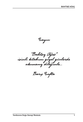 BAHTSIZ AĞAÇ Sayın “Bahtsız Ağaç” isimli kitabımı güzel günlerde okumanız dileğimle... Barış Softa Yenibosna Doğu Sanayi İlkokulu 1