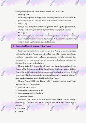 Faktor pendorong ekonomi kreatif menurut Sartika, dkk (2022) adalah :