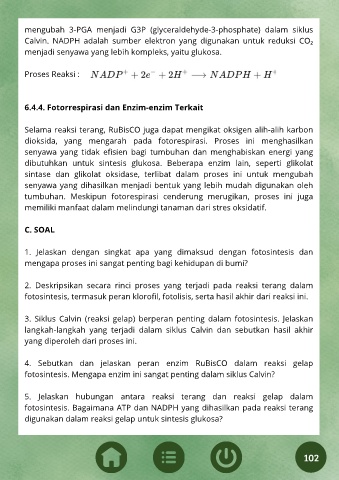 Calvin.  NADPH  adalah  sumber  elektron  yang  digunakan  untuk  reduksi  CO₂
