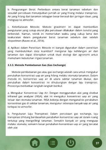b. Pengukuran Laju Transpirasi: Dalam percobaan gas exchange, laju