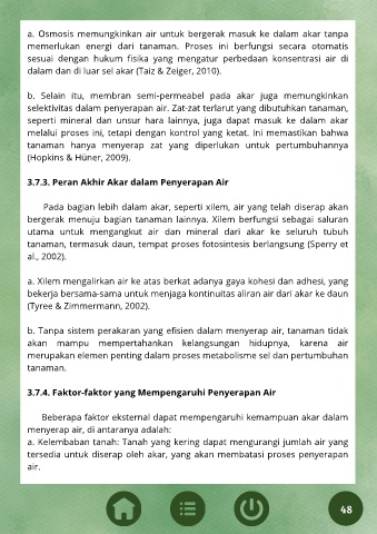b. Selain itu, membran semi-permeabel pada akar juga memungkinkan
