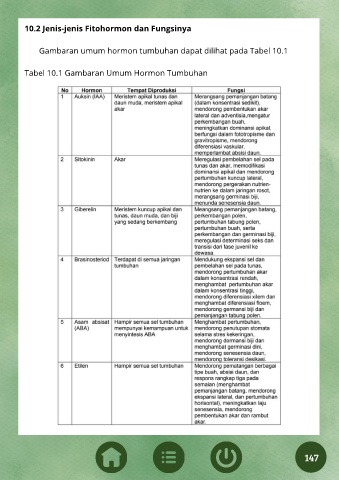 10.2 Jenis-jenis Fitohormon dan Fungsinya Gambaran umum hormon tumbuhan dapat dilihat pada Tabel 10.1 Tabel 10.1 Gambaran Umum Hormon Tumbuhan 147