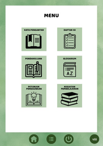 MENU KATA PENGANTAR DAFTAR ISI PENDAHULUAN GLOSARIUM PETUNJUK KEGIATAN PENGGUNAAN PEMBELAJARAN viii