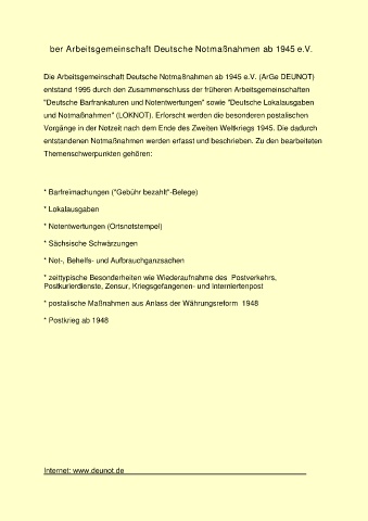 Die Arbeitsgemeinschaft Deutsche Notmaßnahmen ab 1945 e.V. (ArGe DEUNOT)