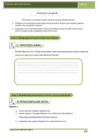 5. Lakukan kegiatan “investigasi Replikasi virus” melalui Link vidio berikut ini