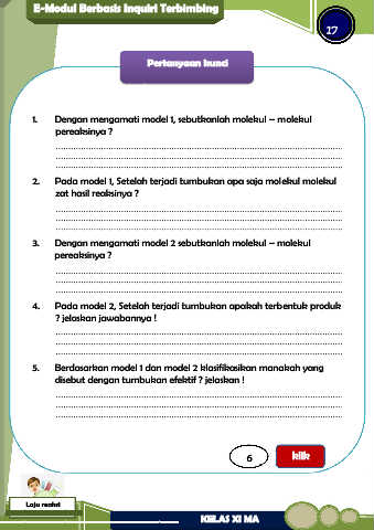 4. Pada model 2, Setelah terjadi tumbukan apakah terbentuk produk