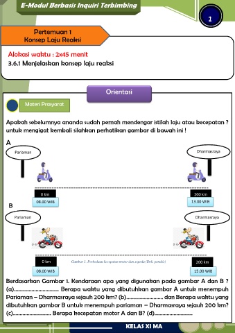 Gambar 1. Perbedaan kecepatan motor dan sepeda (Dok. penulis)   200 km