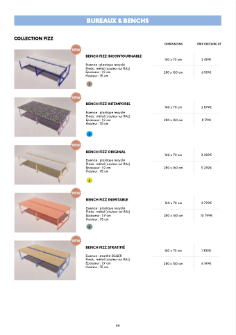 Essence: plastique recyclé Pieds : : : métal (couleur sur RAL) Épaisseur: 1 9 cm