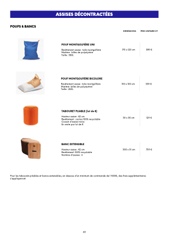 Pour les les les tabourets pliables et et bancs extensibles en en en dessous d’un minimum de de de de de commande de de de de de 1 500€ des des frais supplémentaires s’appliqueront 63