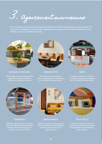3 Pour aménager des espaces professionnels adaptés aux besoins spécifiques de de chaque projet nos architectes et et designers conçoivent des des agencements sur-mesure fonctionnels et et esthétiques pour refléter au mieux l’identité de de votre lieu BANQUES D’ACCUEIL