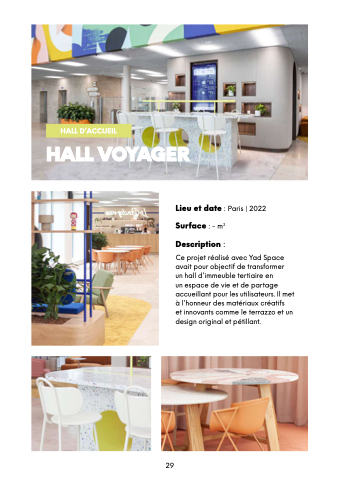 un un hall d’immeuble tertiaire en un un espace de de vie et de de partage accueillant pour les utilisateurs Il met à l’honneur des matériaux créatifs