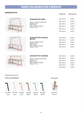 RAL RAL 9005 RAL RAL 9010 inclus inclus inclus inclus RAL 3012 inclus RAL 8004 119€ HT