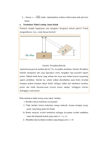 iv. Memiliki nilai koefisien restitusi sama dengan nol (e = 0)