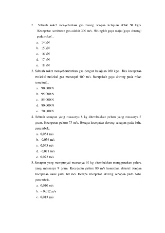 2. Sebuah roket menyeburkan gas buang dengan kelajuan debit 50 kg/s.