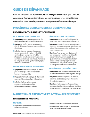 Ceci est un GUIDE DE FORMATION TECHNIQUE destiné aux spas OWOW,