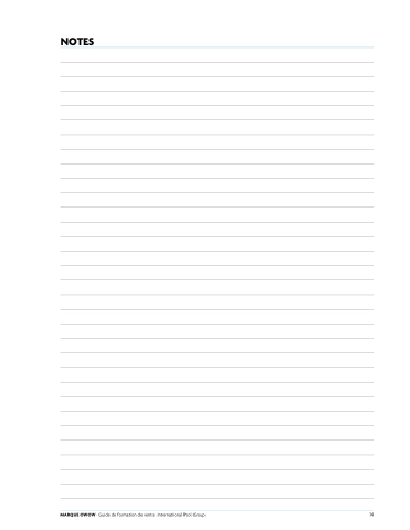 NOTES MARQUE OWOW · Guide de formation de vente · International Pool Group 14