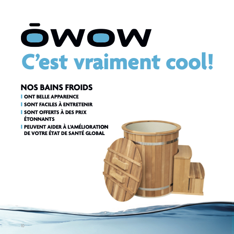 C’est vraiment cool! NOS BAINS FROIDS ❙ ONT BELLE APPARENCE ❙ SONT FACILES À ENTRETENIR ❙ SONT OFFERTS À DES PRIX ÉTONNANTS ❙ PEUVENT AIDER À L’AMÉLIORATION DE VOTRE ÉTAT DE SANTÉ GLOBAL 10