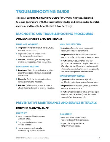 This is a TECHNICAL TRAINING GUIDE for OWOW hot tubs, designed