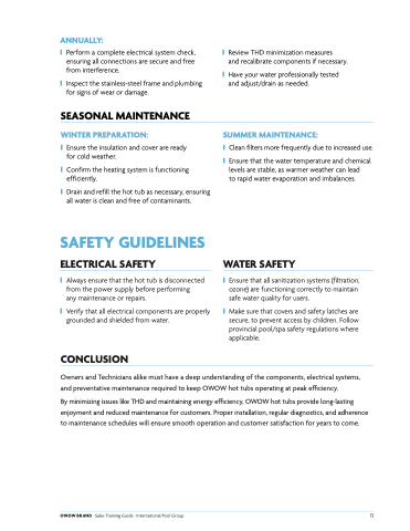 and preventative maintenance required to keep OWOW hot tubs operating at peak efficiency.